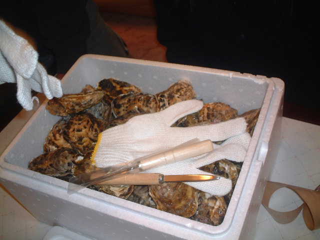 ・箱一杯の牡蠣を差し入れしてくれました。